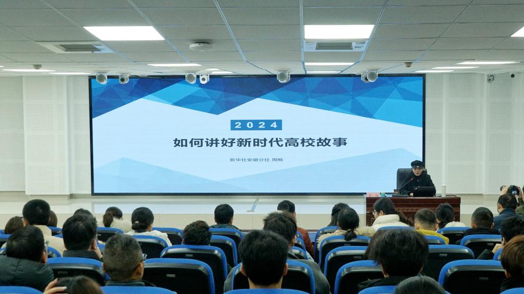 12月12日上午,我校在实习实训楼C楼103阶梯教室召开新闻宣传工作培训会,新华社安徽分社政文部副主任周畅应邀作“如何讲好新时代高校故事”主题培训。周畅从围绕中心、服务大局中找准坐标定位,坚持新闻宣传工作的党性原则,坚持新闻的真实性原则三个方面,结合多个新闻案例,着重针对如何做好高校新闻宣传工作进行了指...