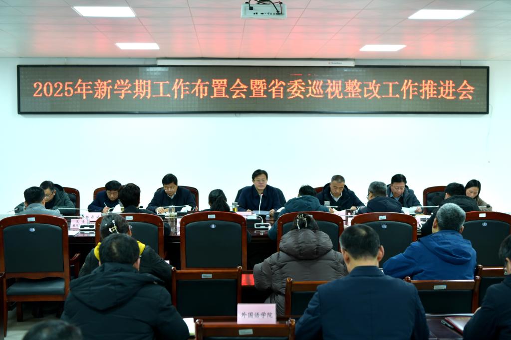 2月17日下午,我校召开新学期工作布置会暨省委巡视整改工作推进会,对2025年重点工作进行安排,对巡视整改工作进行再推进。校领导、各职能部门主要负责人和二级学院党政主要负责人参加会议。会议由党委书记李红主持。会议传达学习了全省学校安全工作会议精神,集中通报了巡视整改进展情况。会上,校领导依次对分管领域新...
