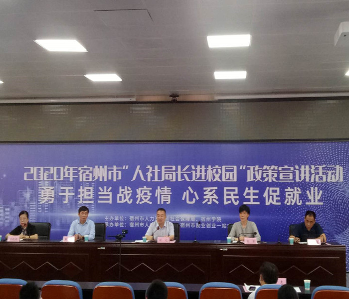 为贯彻落实“四进一促”专项活动,扎实做好稳就业和保毕业生就业工作,7月4日上午,由宿州市人社局和我校联合举办的以“勇于担当战疫情 心系民生促就业”为主题的2020年宿州市“人社局长进校园”政策宣讲活动在逸夫楼第二会议室举行。宿州市人力资源和社会保障局党组书记、局长刘光,宿州市人社局调研员谭晓硼,我校校...