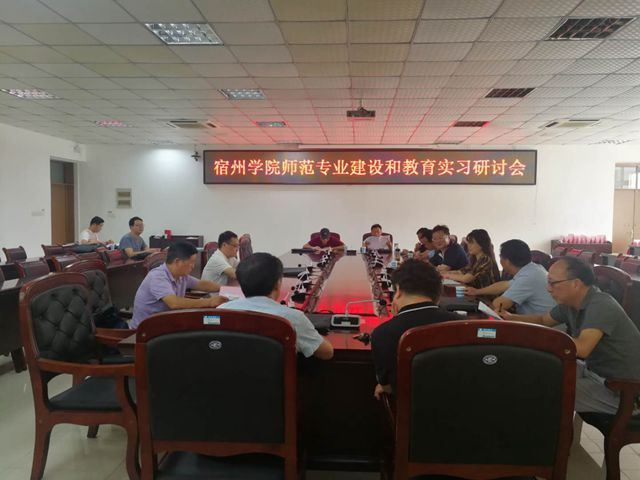 8月28日下午,我校在逸夫楼第一会议室召开师范专业建设和教育实习研讨会。副校长张英彦,宿州八中、实验中学等实习基地学校的有关领导出席了本次会议,各相关二级学院院长,教务处处长孙林华、副处长卓馨、蔡若愚以及实习中学领队教师参加会议。座谈会由教务处长孙林华主持。张英彦代表学校向前来参会的各实习基地学校领...