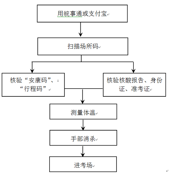 617日下午600—640的时段内,允许考生凭身份证、准考证、安康码、行程码、首场考试考前48小时内核酸检测阴性报告(纸质版或电子版均可),经体温检测后从我校南大门入校查看考场,看完考场后尽快原路出校,不得在校园内逗留。600之前严禁考生入校查看考场。