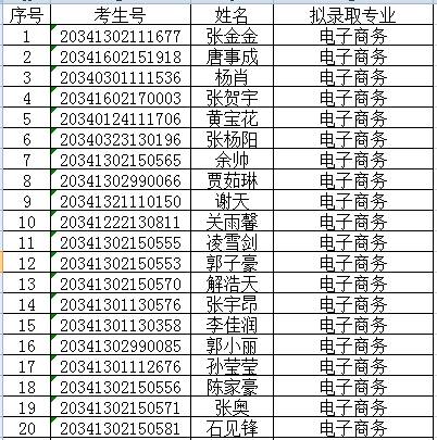 现对预录取考生名单进行公示,公示时间6月15日—6月19日,如有异议,请于6月19日17:00前以书面形式反馈到大赢家体育招生就业处(联系电话:0557-2875361,传真:0557-2875360),也可直接向大赢家体育纪委办公室(监察专员办公室)反馈(电话:0557-2875950)。预录取名单如下: