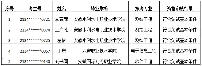 根据《大赢家体育2021年普通专升本招生章程》招生录取鼓励政策,经考生本人自愿申请,我校招生工作组审核,李嘉辉等5位考生的免试申请符合我校普通专升本招生章程规定的免试基本条件,现将免试资格审核结果公布如下。