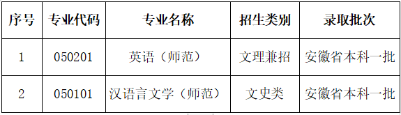 近日,经安徽省教育厅批准,我校英语(师范)、汉语言文学(师范)等2个专业自2023年起纳入安徽省普通高考本科一批次招生,招生工作取得历史性突破。